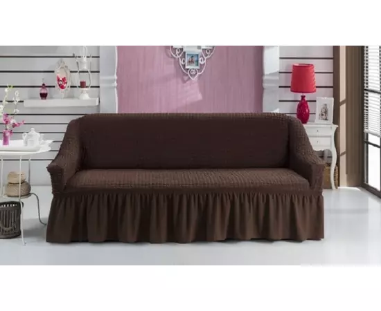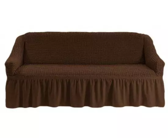 Husa pentru Canapea 3 Locuri, Elastica si Creponata, cu Volane, Maro-HEP20