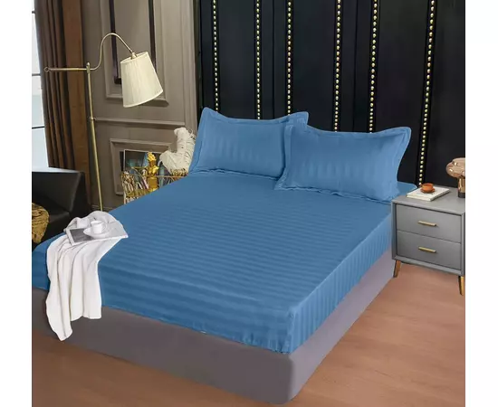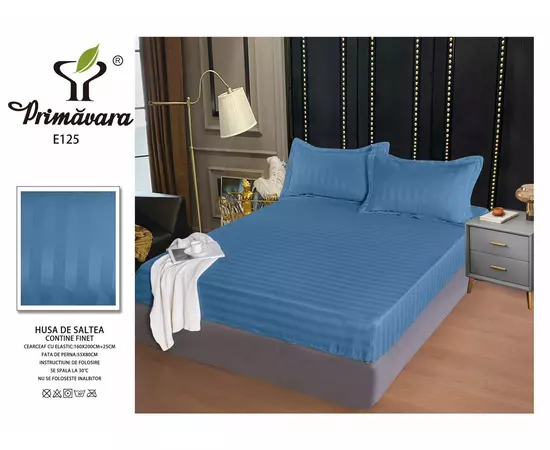 Husa de Pat + 2 Fete de Perna Bumbac Damasc 160x200cm, Albastru - CPL354