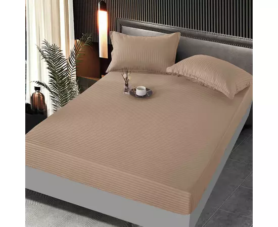 Husa de Pat + 2 Fete de Perna Bumbac Damasc 160x200cm, Bej - JOJ146