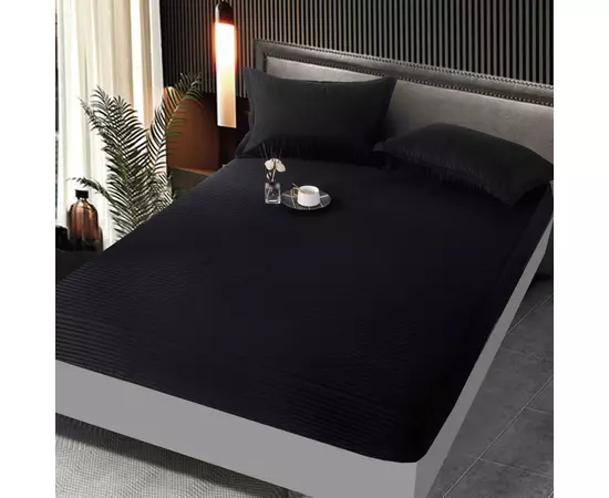 Husa de Pat + 2 Fete de Perna Bumbac Damasc 160x200cm, Negru - JOJ152