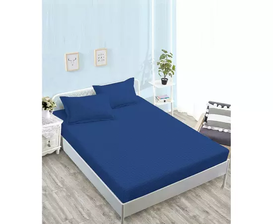Husa de Pat + 2 Fete de Perna Bumbac Damasc, Bleumarin - XIA188