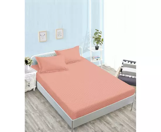 Husa de Pat + 2 Fete de Perna Bumbac Damasc, Coral Deschis - XIA183