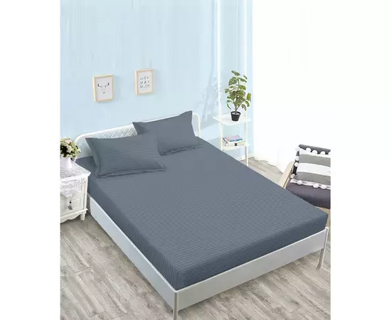 Husa de Pat + 2 Fete de Perna Bumbac Damasc, Gri Inchis - XIA185