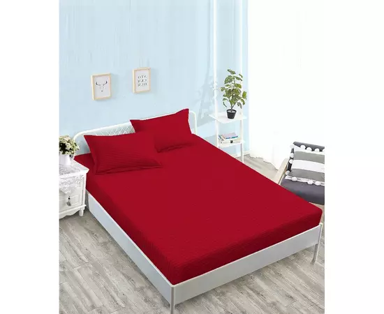Husa de Pat + 2 Fete de Perna Bumbac Damasc, Visiniu - XIA182