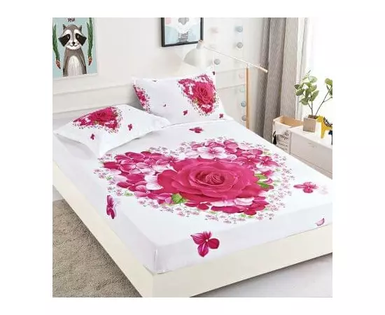 Husa de Pat + 2 Fete de Perna din Finet 160x200cm - JO789 Alb-Roz