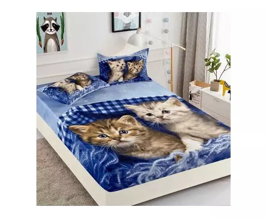 Husa de Pat + 2 Fete de Perna din Finet 160x200cm - JO795 Pisicute