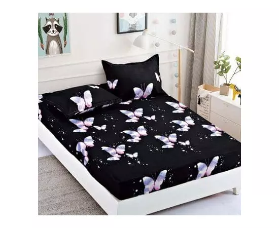 Husa de Pat + 2 Fete de Perna din Finet 180x200cm - JO807 Negru cu Fluturi