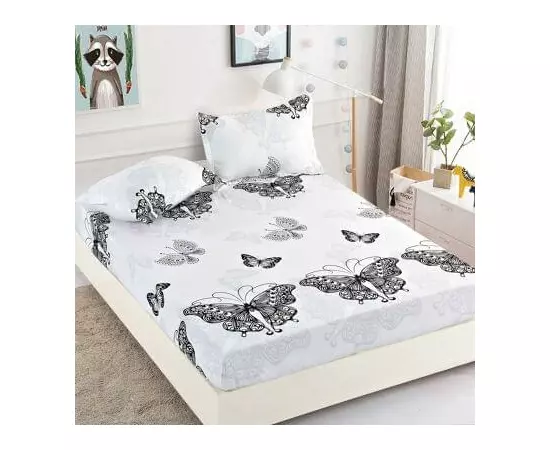 Husa de Pat + 2 Fete de Perna din Finet 180x200cm - JO808 Alb cu Fluturi