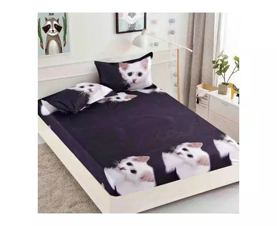 Husa de Pat + 2 Fete de Perna din Finet 180x200cm - JO835 Pisicuta Alba