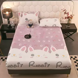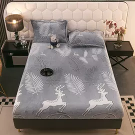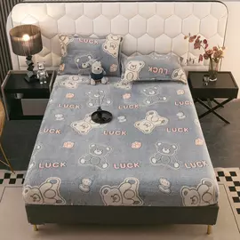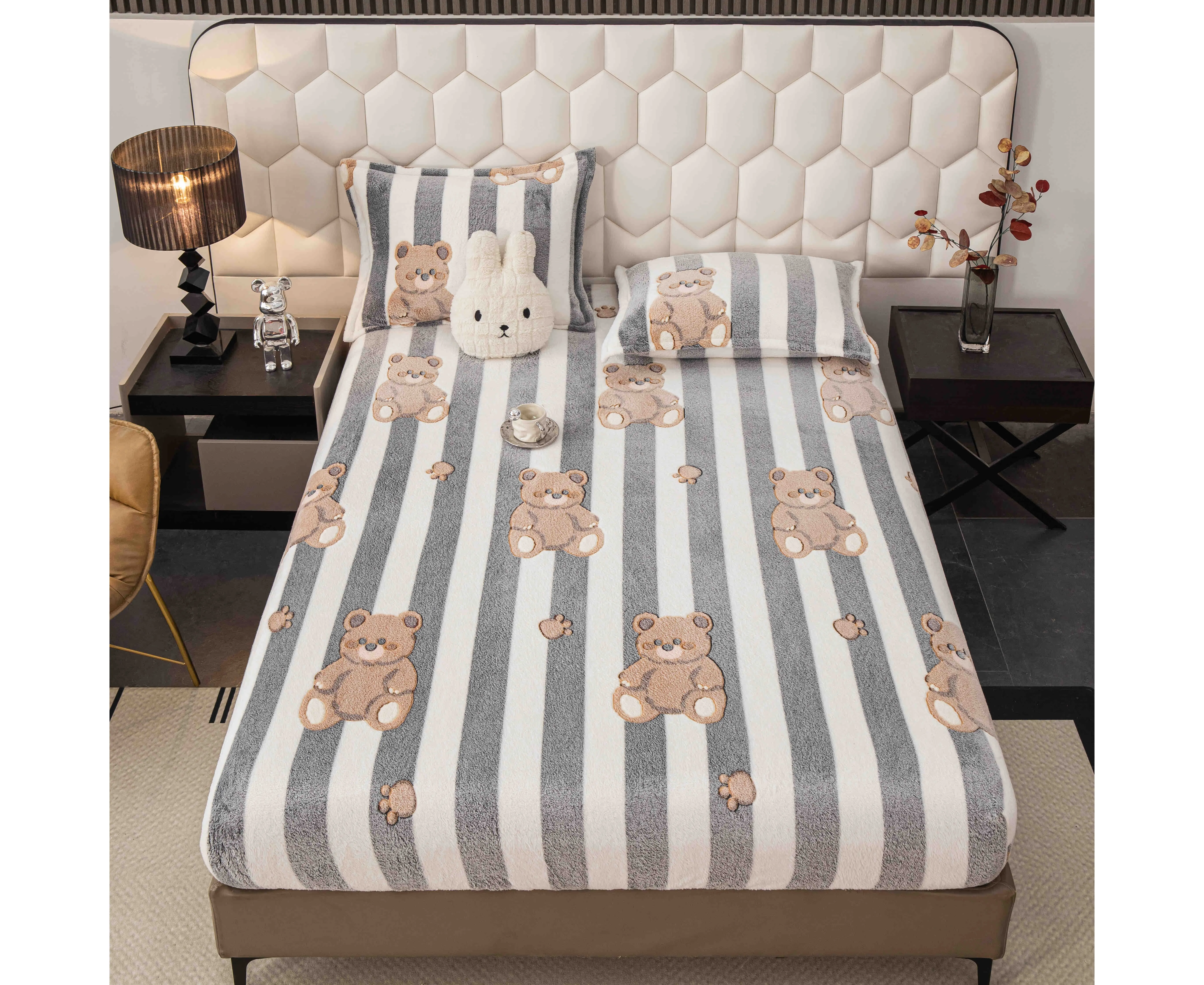 Husa de pat cocolino cu elastic + 2 fete de perne pentru pat dublu, confectionate din Microfibra plusata