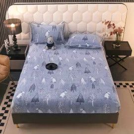 Husa de pat cocolino cu elastic + 2 fete de perne pentru pat dublu, confectionate din Microfibra plusata