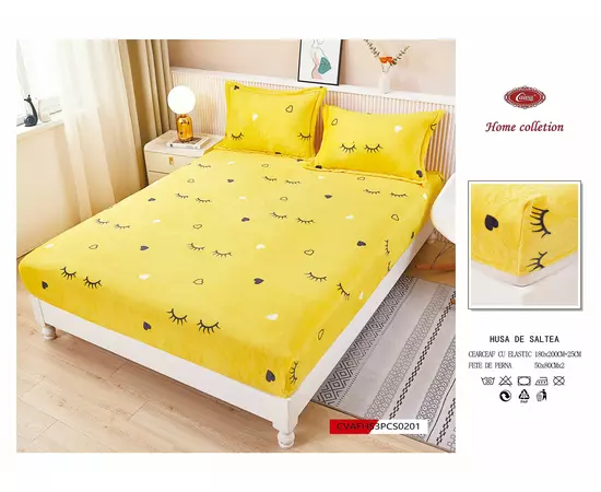 Husa de pat cocolino cu elastic + 2 fete de perne pentru pat dublu, confectionate din Microfibra plusata