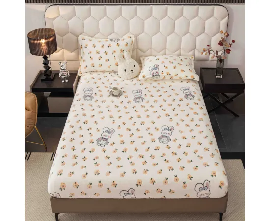 Husa de pat cocolino cu elastic + 2 fete de perne pentru pat dublu, confectionate din Microfibra plusata