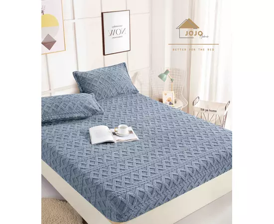 Husa de pat tricot cu elastic + 2 fete de perne pentru pat dublu, confectionate din Microfibra plusata