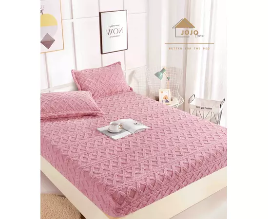 Husa De Pat Tricot Cu Elastic + 2 Fete De Perna Pentru Pat Dublu, Roz- JO965