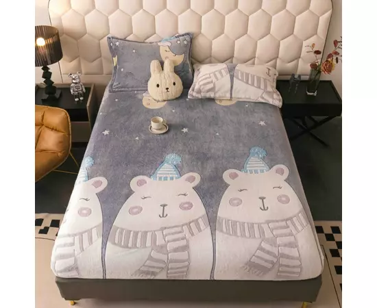 Husa de pat cocolino cu elastic + 2 fete de perne pentru pat dublu, confectionate din Microfibra plusata