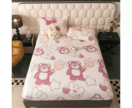 Husa de pat cocolino cu elastic + 2 fete de perne pentru pat dublu, confectionate din Microfibra plusata