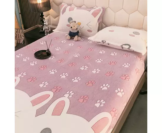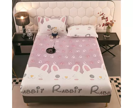 Husa de pat cocolino cu elastic + 2 fete de perne pentru pat dublu, confectionate din Microfibra plusata