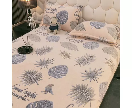 Husa de pat cocolino cu elastic + 2 fete de perne pentru pat dublu, confectionate din Microfibra plusata