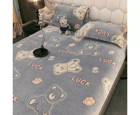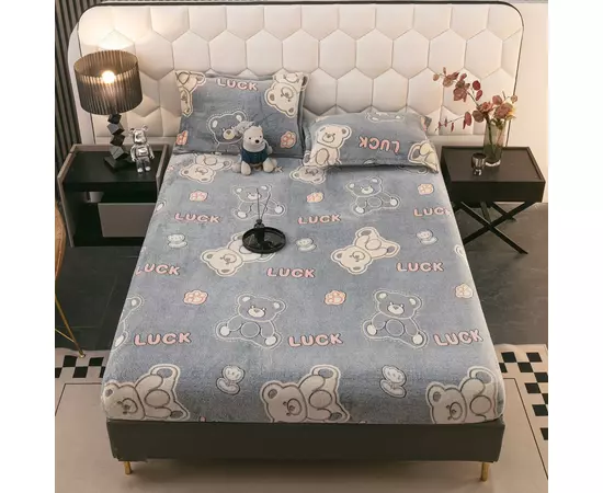 Husa de pat cocolino cu elastic + 2 fete de perne pentru pat dublu, confectionate din Microfibra plusata