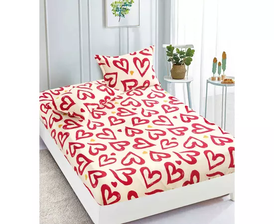 Husa de Pat Cocolino cu Elastic + 2 Fete de Perna - JO783 Inimi Rosii
