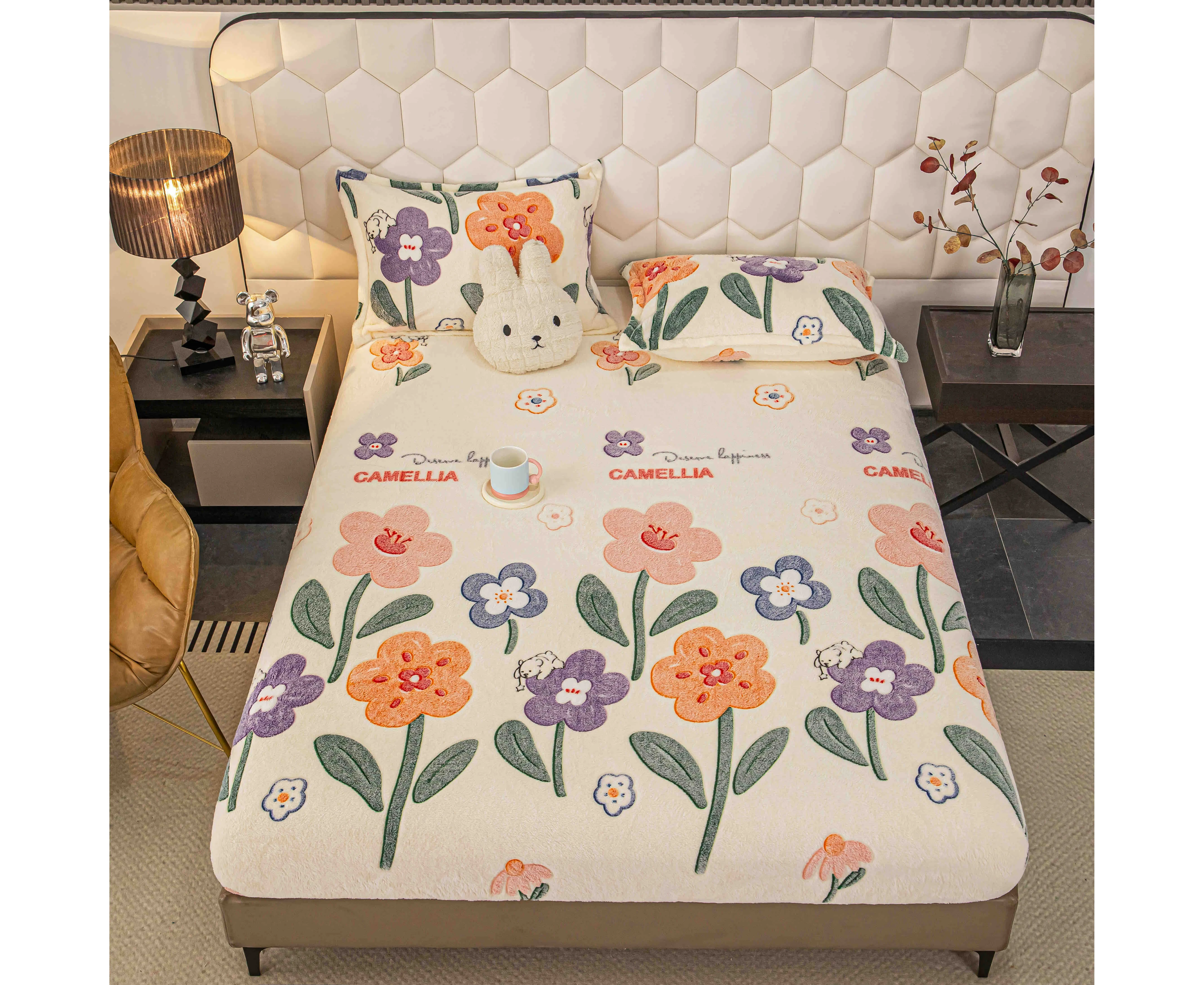Husa de pat cocolino cu elastic + 2 fete de perne pentru pat dublu, confectionate din Microfibra plusata