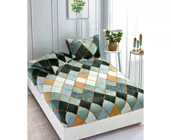 Husa de Pat Cocolino cu Elastic + 2 Fete de Perna - JO777 Romb Verde