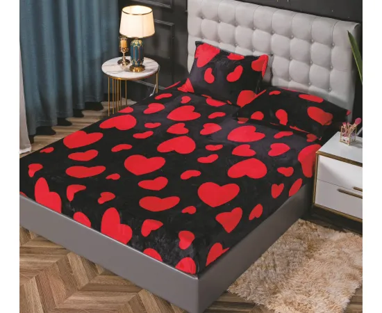 Husa de pat cocolino cu elastic + 2 fete de perne pentru pat dublu, confectionate din Microfibra plusata