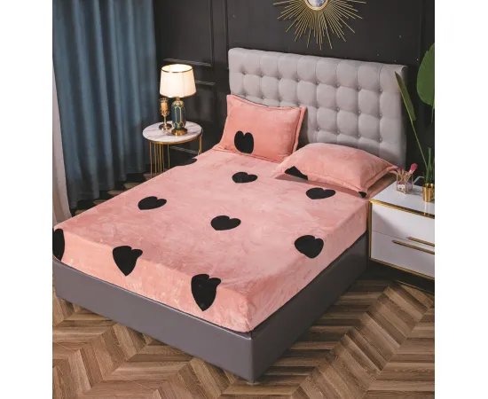Husa de pat cocolino cu elastic + 2 fete de perne pentru pat dublu, confectionate din Microfibra plusata