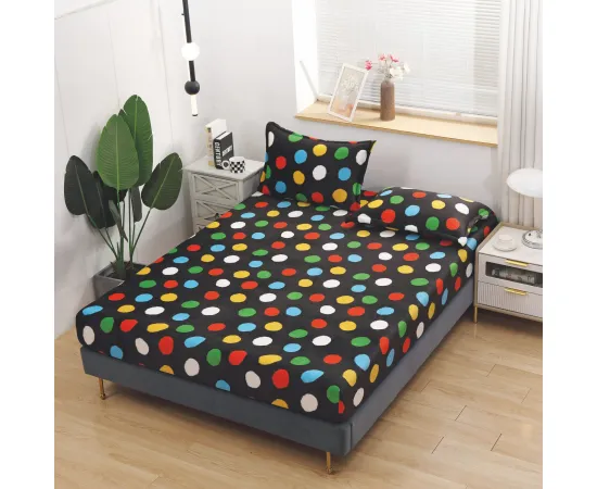 Husa de pat cocolino cu elastic + 2 fete de perne pentru pat dublu, confectionate din Microfibra plusata
