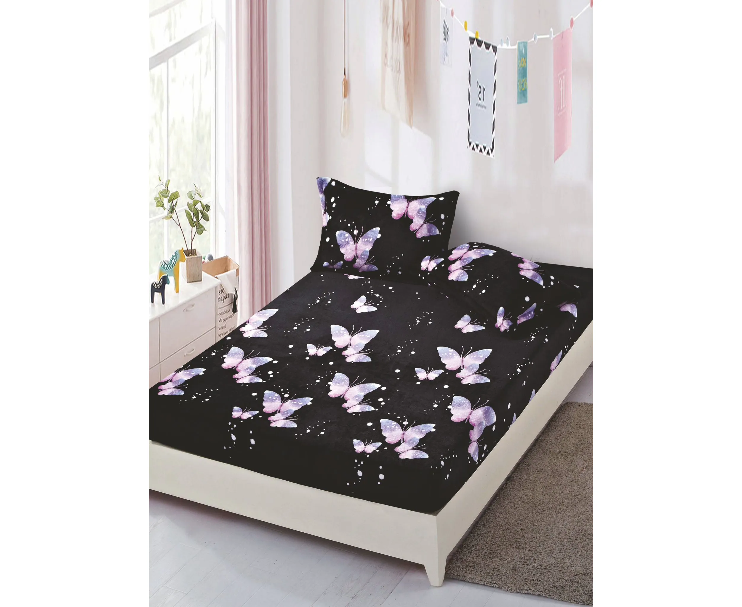 Husa de pat cocolino cu elastic + 2 fete de perne pentru pat dublu, confectionate din Microfibra plusata