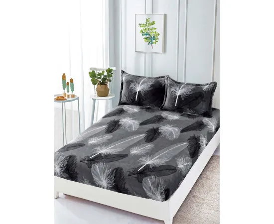 Husa de pat cocolino cu elastic + 2 fete de perne pentru pat dublu, confectionate din Microfibra plusata