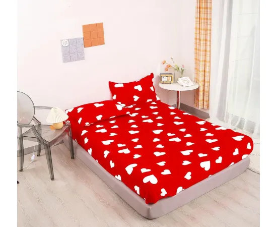 Husa de pat cocolino cu elastic + 2 fete de perne pentru pat dublu, confectionate din Microfibra plusata