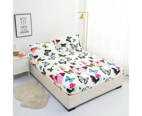 Husa de pat cocolino cu elastic + 2 fete de perne pentru pat dublu, confectionate din Microfibra plusata