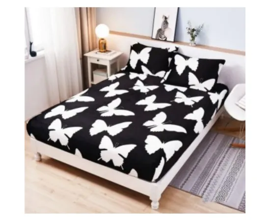 Husa de pat cocolino cu elastic + 2 fete de perne pentru pat dublu, confectionate din Microfibra plusata