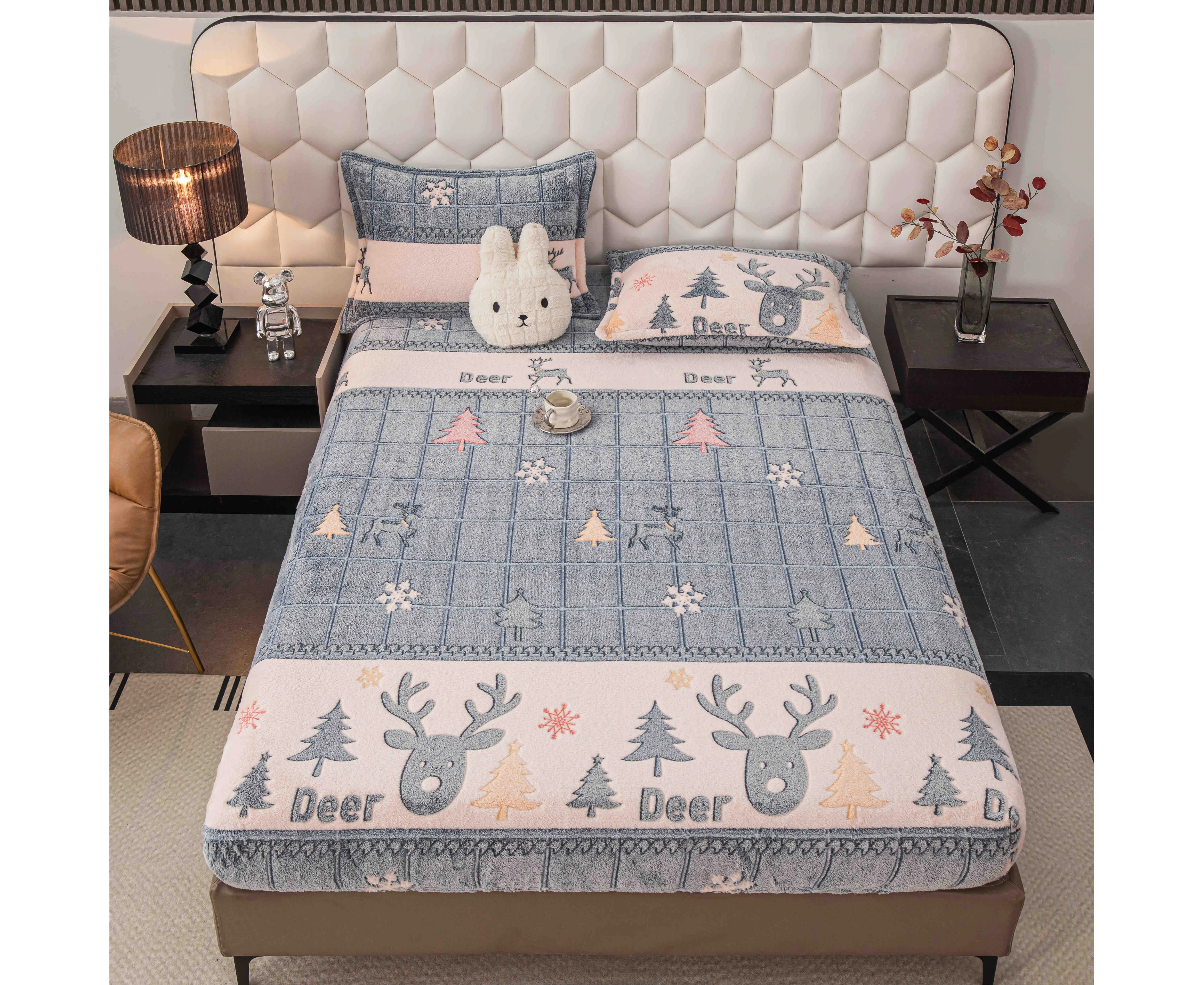 Husa de pat cocolino cu elastic + 2 fete de perne pentru pat dublu, confectionate din Microfibra plusata