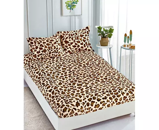 Husa de Pat Cocolino cu Elastic + 2 Fete de Perna - JO784 Model Leopard