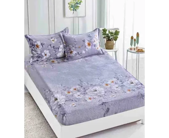 Husa de pat cocolino cu elastic + 2 fete de perne pentru pat dublu, confectionate din Microfibra plusata