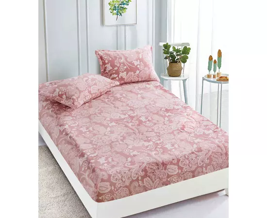 Husa de Pat Cocolino cu Elastic + 2 Fete de Perna - JO787 Flori Roz