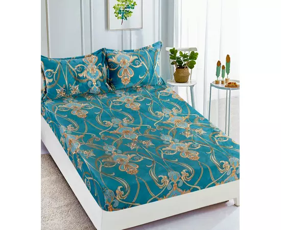 Husa de Pat Cocolino cu Elastic + 2 Fete de Perna - JO781 Turcoaz