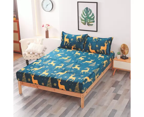 Husa de Pat, Cocolino, Model de Craciun + 2 Fete de Perna, Albastru cu Reni - SUZ02