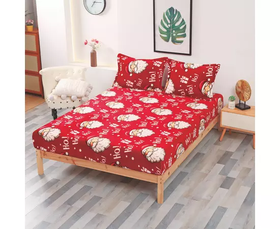 Husa de Pat, Cocolino, Model de Craciun + 2 Fete de Perna, Rosu cu Mos Craciun - SUZ06