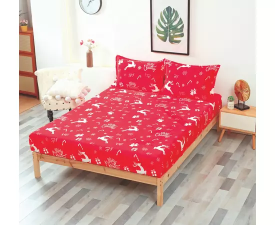 Husa de Pat, Cocolino, Model de Craciun + 2 Fete de Perna, Rosu cu Reni - SUZ05
