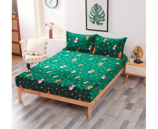 Husa de Pat, Cocolino, Model de Craciun + 2 Fete de Perna, Verde cu Om de Zapada - SUZ09