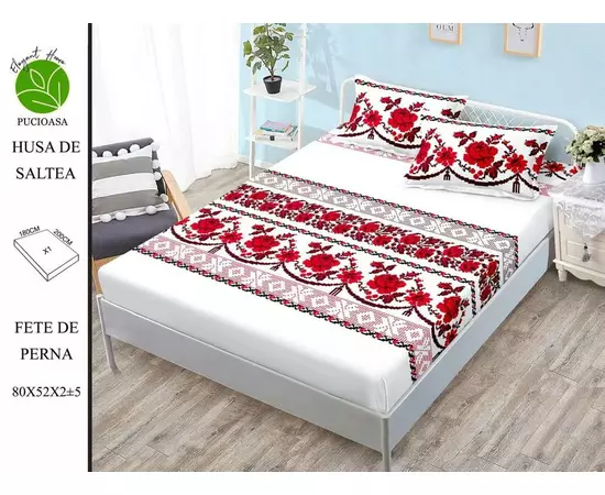 Husa De Pat Cu Elastic Model Traditional + 2 Fete De Perna Pentru Pat Dublu - SIPRG-231