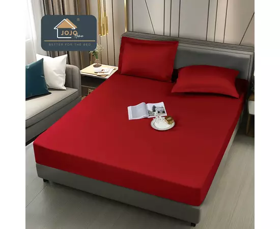 Husa de Pat Impermeabila cu Elastic +2 Fete de Perna, 160x200cm, Visiniu - JOJ687