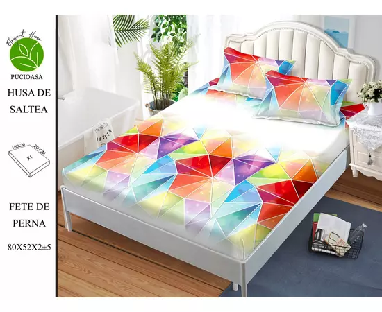 Husa imbraca perfect salteaua cu latime de 180 cm si lungime de 200 cm, atat pe fata cat si lateralele saltelelor, avand elastic de jur imprejur.