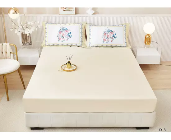 Husa de Pat Saltea - cu Elastic + 2 fete de Perna, Crem - FR349