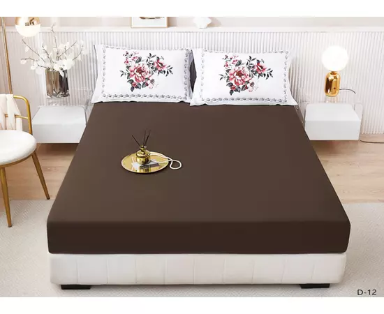 Husa de Pat Saltea - cu Elastic + 2 fete de Perna, Maro - FR351