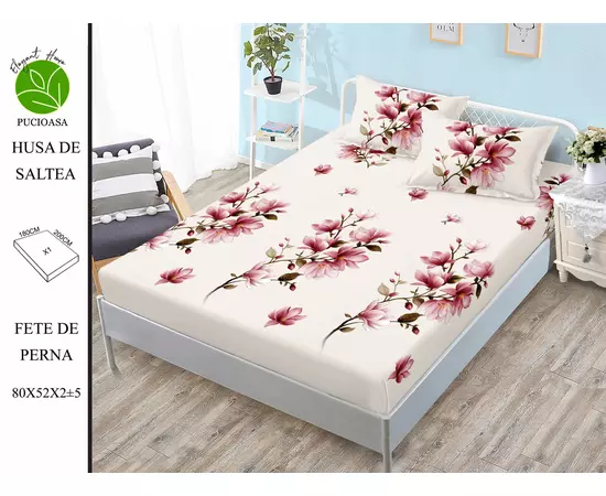 Husa imbraca perfect salteaua cu latime de 180 cm si lungime de 200 cm, atat pe fata cat si lateralele saltelelor, avand elastic de jur imprejur.